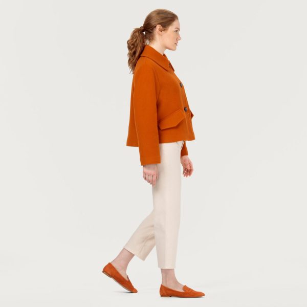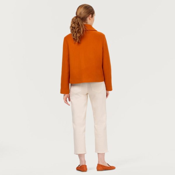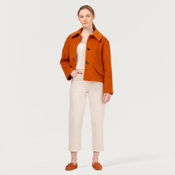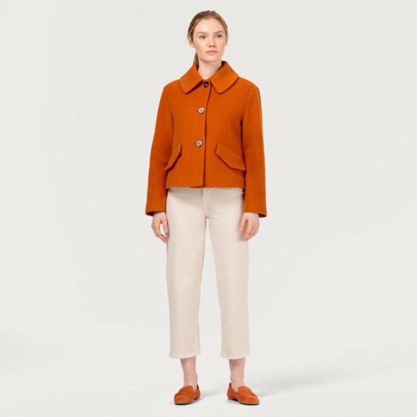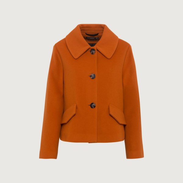 Setzt mit Burnt Orange ein echtes Farb-Statement: die kurz geschnittene HALLHUBER Flanelljacke mit großem Kragen, der bei Kälte auch mal hochgeschlagen werden kann. Mit drei markanten Knöpfen in Hornoptik lässt sich die Kurzjacke schließen, schräg eingesetzte Klappentaschen sorgen für subtile Akzente. Universelles Key Piece aus dickem, flauschig-weichem Flanell in mulesing-freiem Schurwolle-Mix.