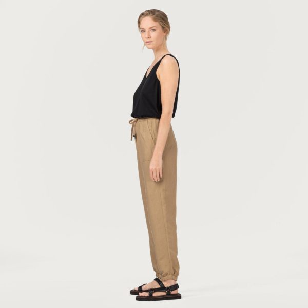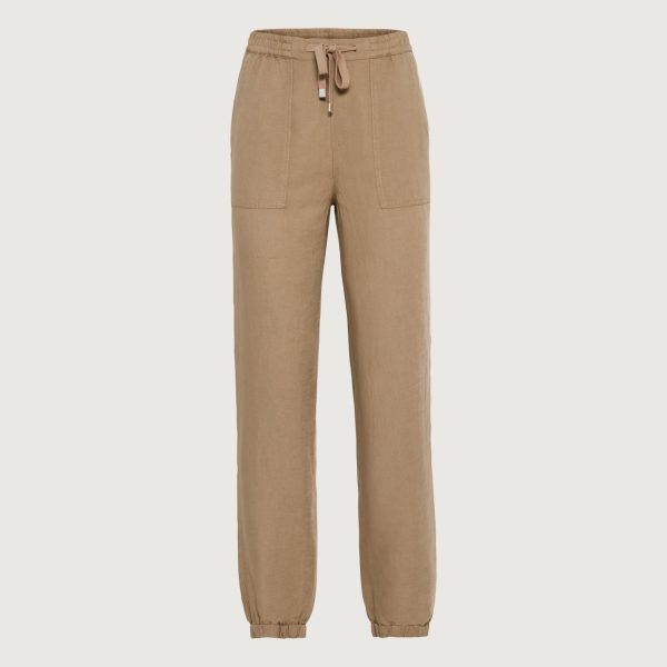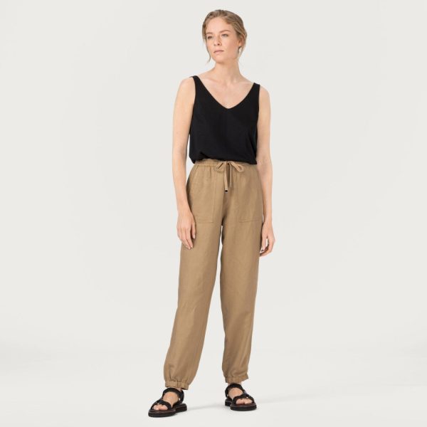 Kommt im sportiven Jogging-Look mit aufgesetzten Taschen auf der Vorderseite: die HALLHUBER Tapered Pants in Hellcamel! Lässiger Style mit Gummizug und Kordelband samt Metallhülsen und elastischen Hosensäumen. Kombinieren Sie das Modell etwa mit locker fallender Leinenbluse und Sneakers.