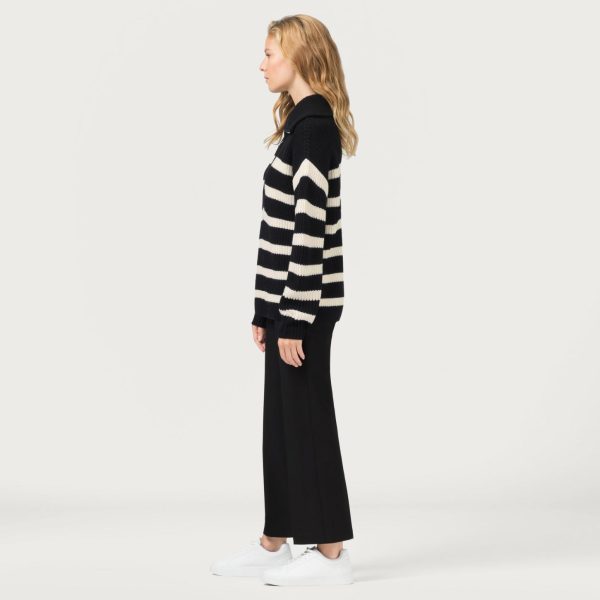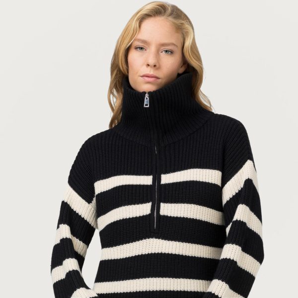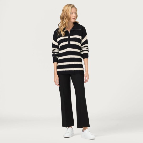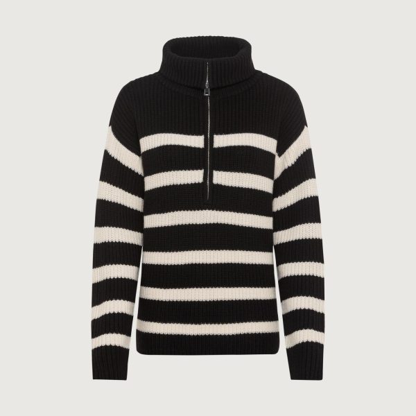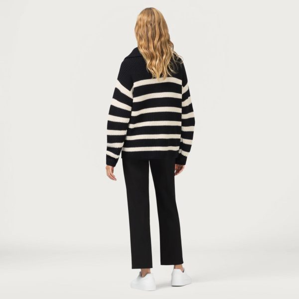 Von den Seemännern abgeschaut: gestreifter HALLHUBER Oversized-Pullover mit großzügigem Troyer-Kragen, der sich mit markantem Metallzipper schließen lässt. Der Troyer-Pullover ist aus grober, RWS-zertifizierter Merinowolle-Qualität in Patentstrick gefertigt. Kombinieren Sie das Modell etwa mit lässiger Jeanshose und Sneakers.