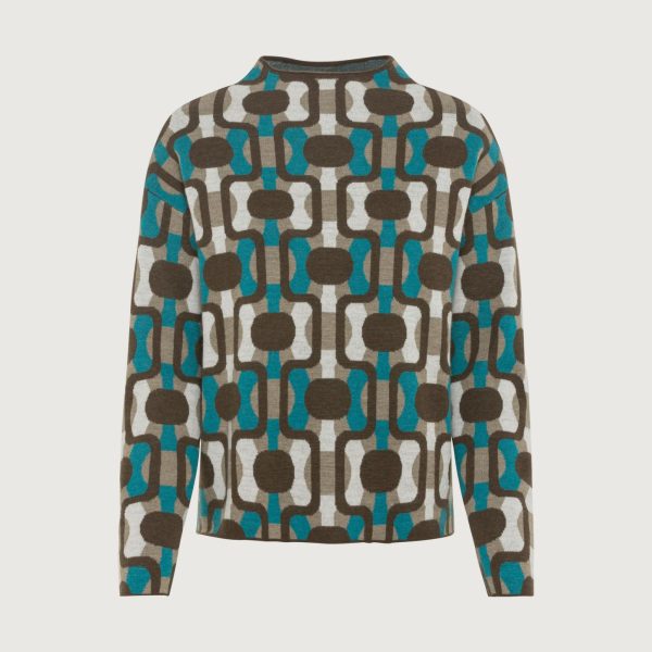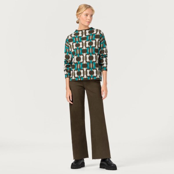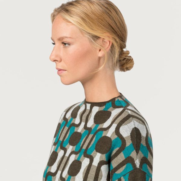 Verbindet lässige Boxy-Silhouette mit auffälligem Retrodessin: der HALLHUBER Jacquardpullover mit halbhohem Stehkragen und weit überschnittener Schulterpartie. Das Modell ist aus weichem Feinstrick in reiner, mulesing-freier Merinowolle-Qualität gefertigt. Stylen Sie den Pullover etwa mit High Waist Pants und Chelsea-Booties.