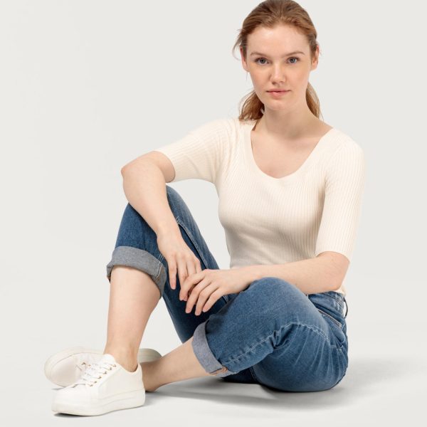 Ein essenzieller Style für unaufgeregte Casual-Looks mit komfortablen Trageeigenschaften: der figurbetonte HALLHUBER Rippstrickpullover mit großzügigem Rundhalsausschnitt und halblangen Ärmeln. Aus supersoftem Garn in Viskose-Qualität – geht unterm Blazer mit Jeans genauso wie solo zum Minirock.