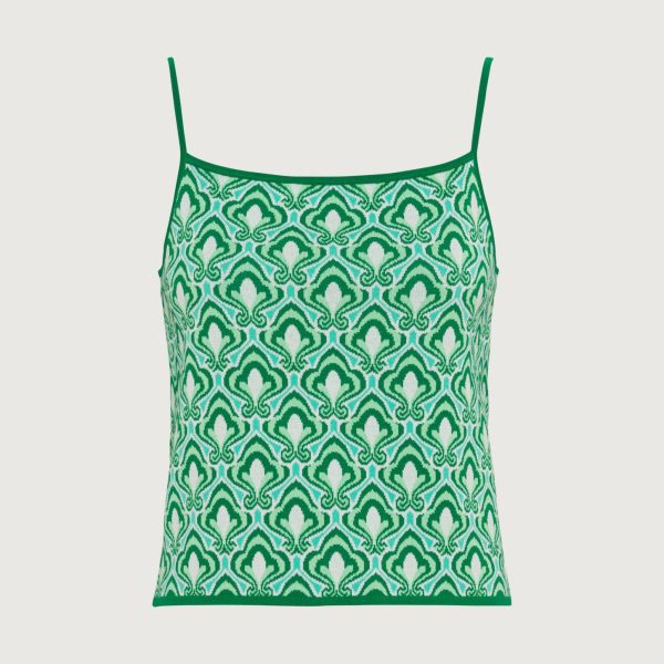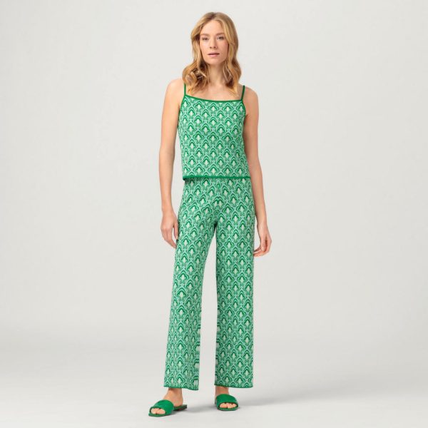 Aus softem Feinstrick in kompakter Lenzing™-EcoVero™-Qualität: das HALLHUBER Jacquard-Stricktop mit Art-Deco-Muster und Spaghettiträgern. Styling-Tipp: Tragen Sie das Stricktop mit der passenden Strickhose als stylisches Matching-Set.