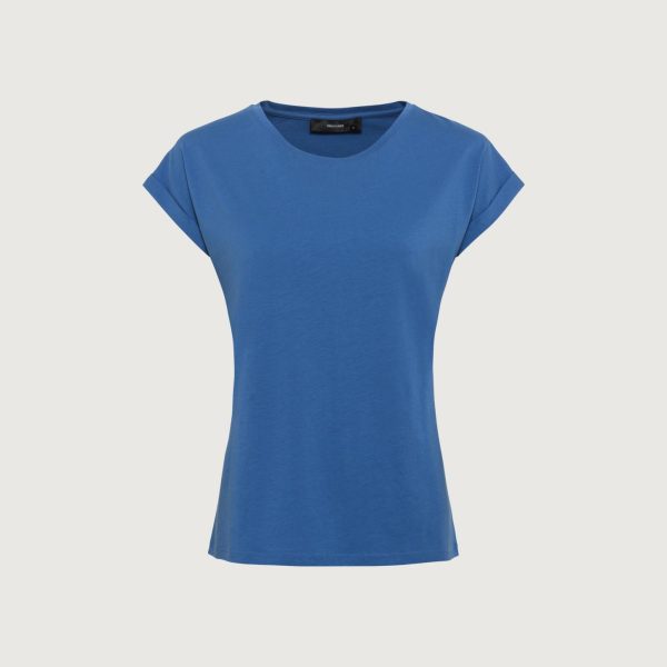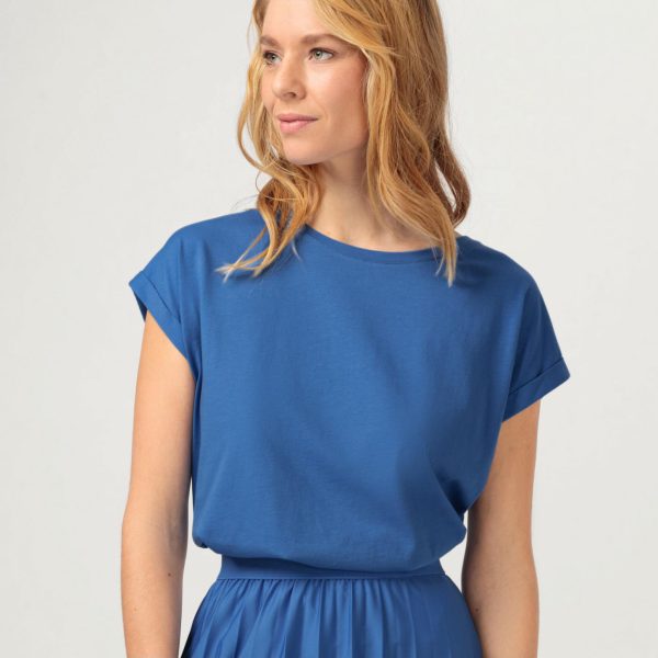 Hallhuber T-Shirts | Damen T-Shirt Aus Leichtem Baumwolle-Modal-Jersey Mit Ärmelaufschlägen Azur