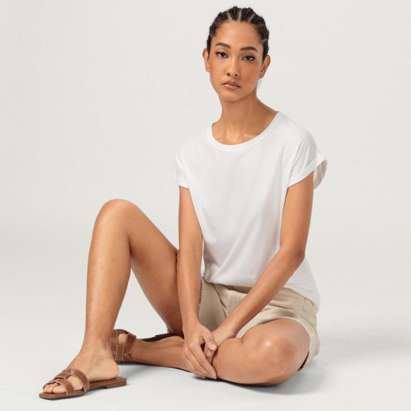 Hallhuber T-Shirts | Damen T-Shirt Aus Leichtem Baumwolle-Modal-Jersey Mit Ärmelaufschlägen Offwhite
