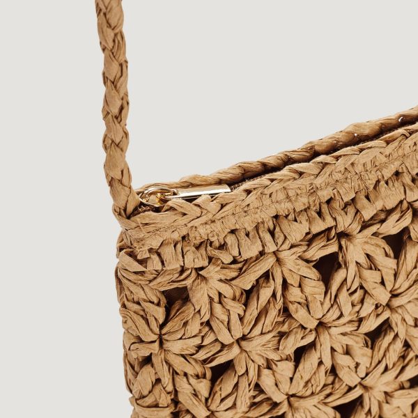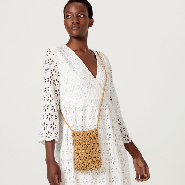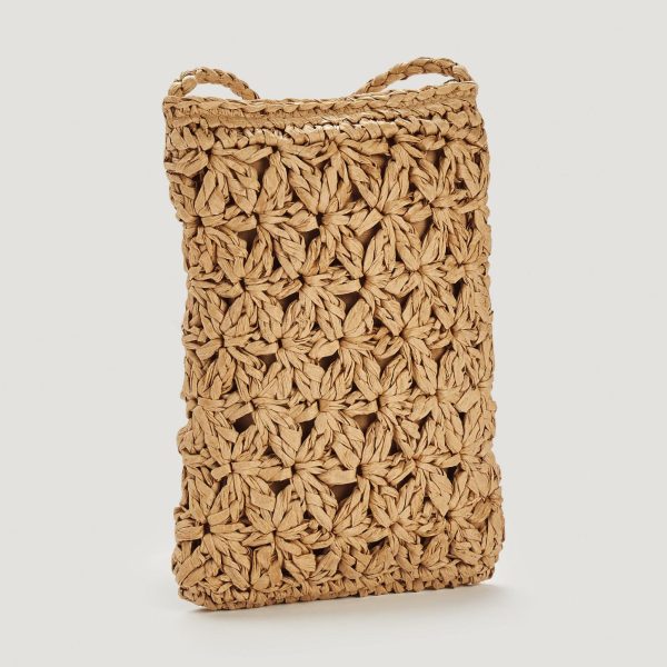 In Blumenoptik: Die Handytasche von HALLHUBER ist das Trend-Accessoire für den Sommer. Die kleine Umhängetasche ist mit ihrem langen Trageriemen und dem Reißverschluss nicht nur praktisch im Alltag, sondern außerdem vielseitig kombinierbar dank des schlichten Designs aus Blumengeflecht. Das Innere der Tasche aus Papierstroh ist mit einem Futterstoff ausgekleidet.