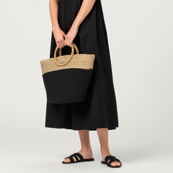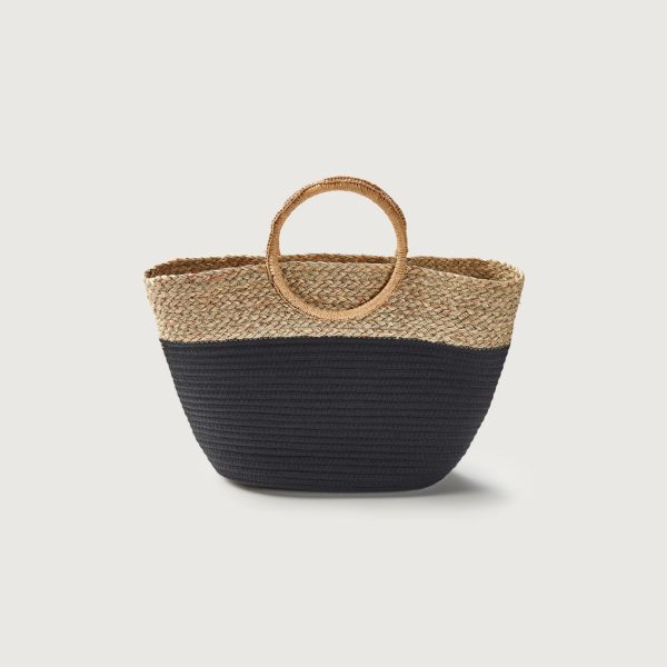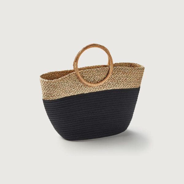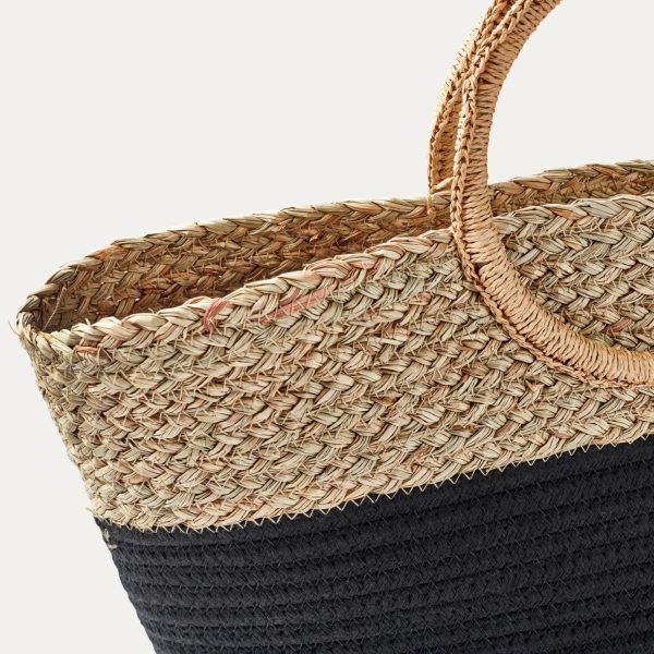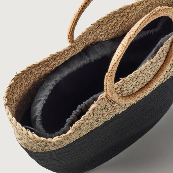 Hallhuber Taschen | Damen Zweifarbige Korbtasche Aus Stabilem Baumwolle-Seegras-Geflecht Black